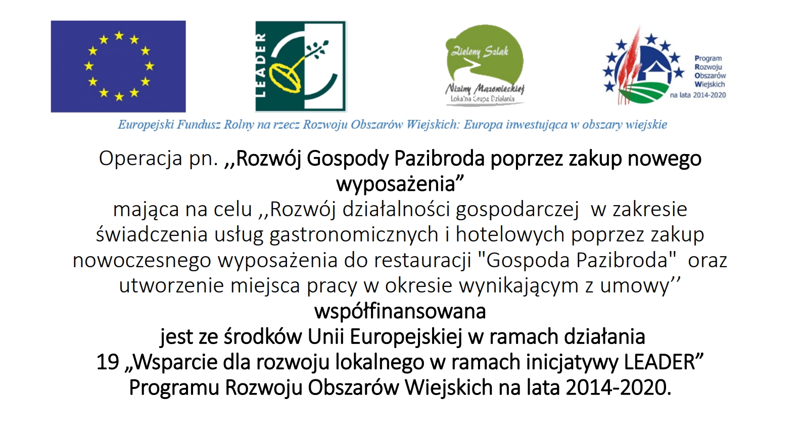 Z wyróżnieniem tym, spada też na cały nasz Zespół obowiazek zachowania bezwzglednej wierności wyznawanym do tej pory wartościom i smakom. Zapewniamy, że w progach Gospody Pazibroda zawsze odnajdą Państwo ten sam, wspaniały smak mazowieckiej tradycji.